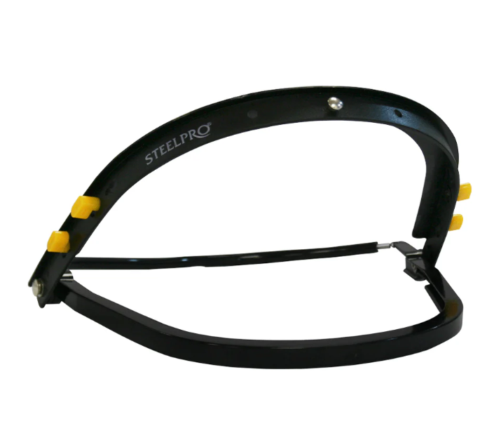 Adaptador de plástico Steelpro, liviano que permite adosar al casco el visor de manera cómoda y ajustada para trabajos con proyección de partículas, chispas, etc.